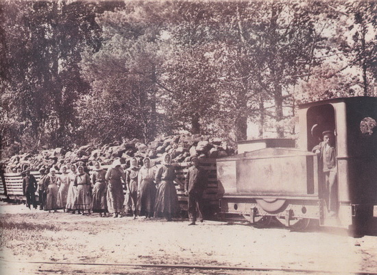 Arbeiter der Torffabrik Šilute um 1900 (Ansichtskarte)