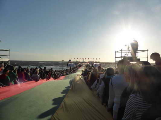 Zur Erinnerung an die Krönung von Mindaugas am 6. Juli 1253 wurde 2015 eine 1 km lange Fahne durch Palanga zur Seebrücke getragen